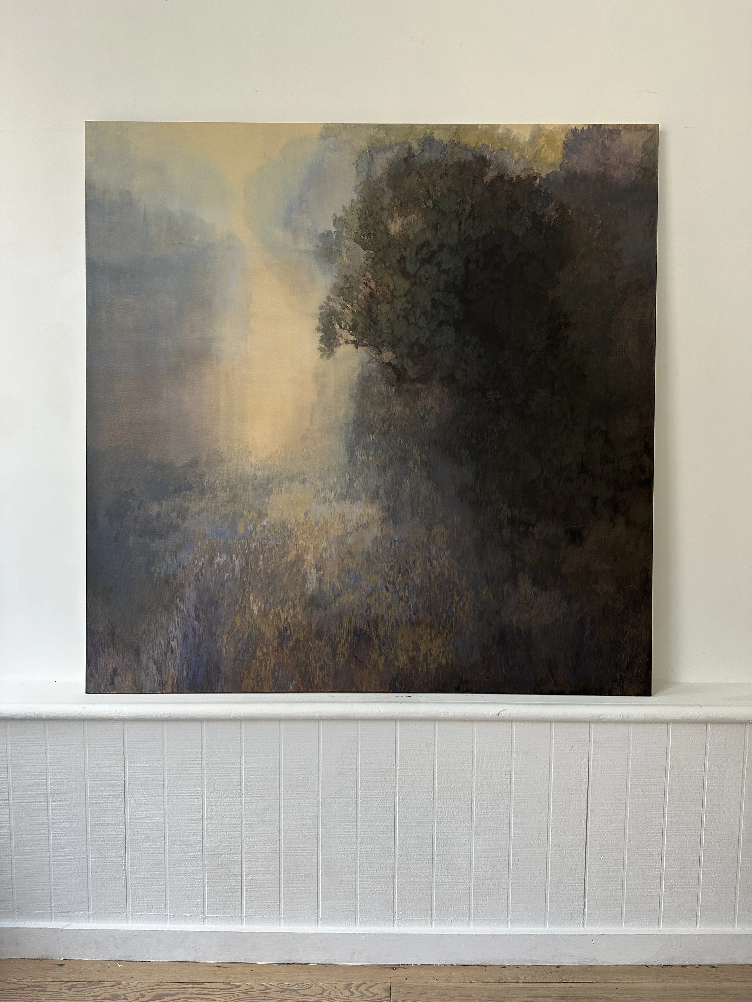 Artist Statement: I seek to uncover landscapes with a paintbrush while exploring the human condition. The energy and connection that lies within the natural world has much to teach us about ourselves, and about one another. My creative process begins by building upon watery layers of paint, with the emphasis being on the sense of touch. As I make sweeping arcs with the watered down paint, or soft delicate rubs with a towel to blend, a landscape slowly and organically forms. Part II of the process begins the uncovering. It feels as if the entire scene already exists on the canvas. My role is not only to find it, but to pull it out of the haze. I selectively detail important moments by using a dry brush technique. These moments may resemble memories, relationships, or the landscape that you consider home. My intent is to uncover what has always been there- waiting to be felt, seen, touched, loved.