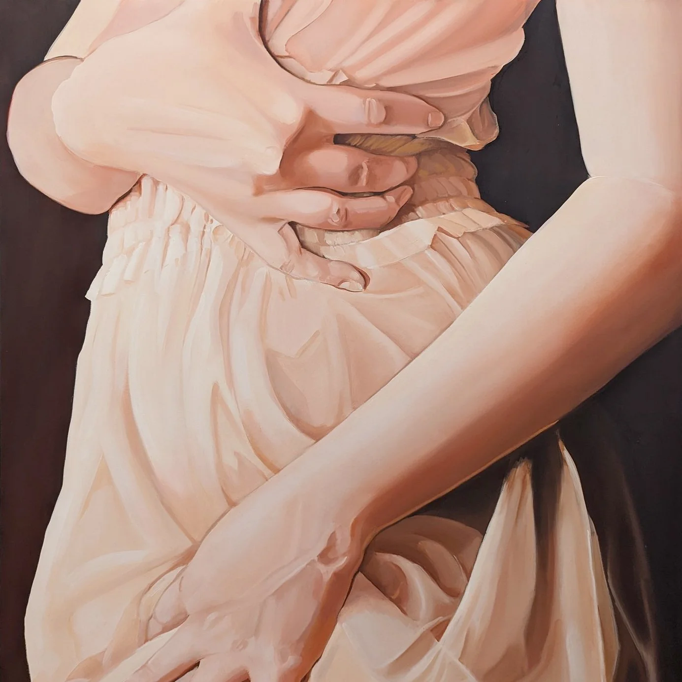 Caroline Pinney is a contemporary figurative artist whose work primarily explores intimacy and human relationships. Since receiving her BFA in 2016, the artist has lived in Nashville, Richmond, and is now based in Austin — energized by the warm weather. The landscapes and robust art and music scenes of each city have propelled her curiosity and independence, instilling lyricism and movement into her work.