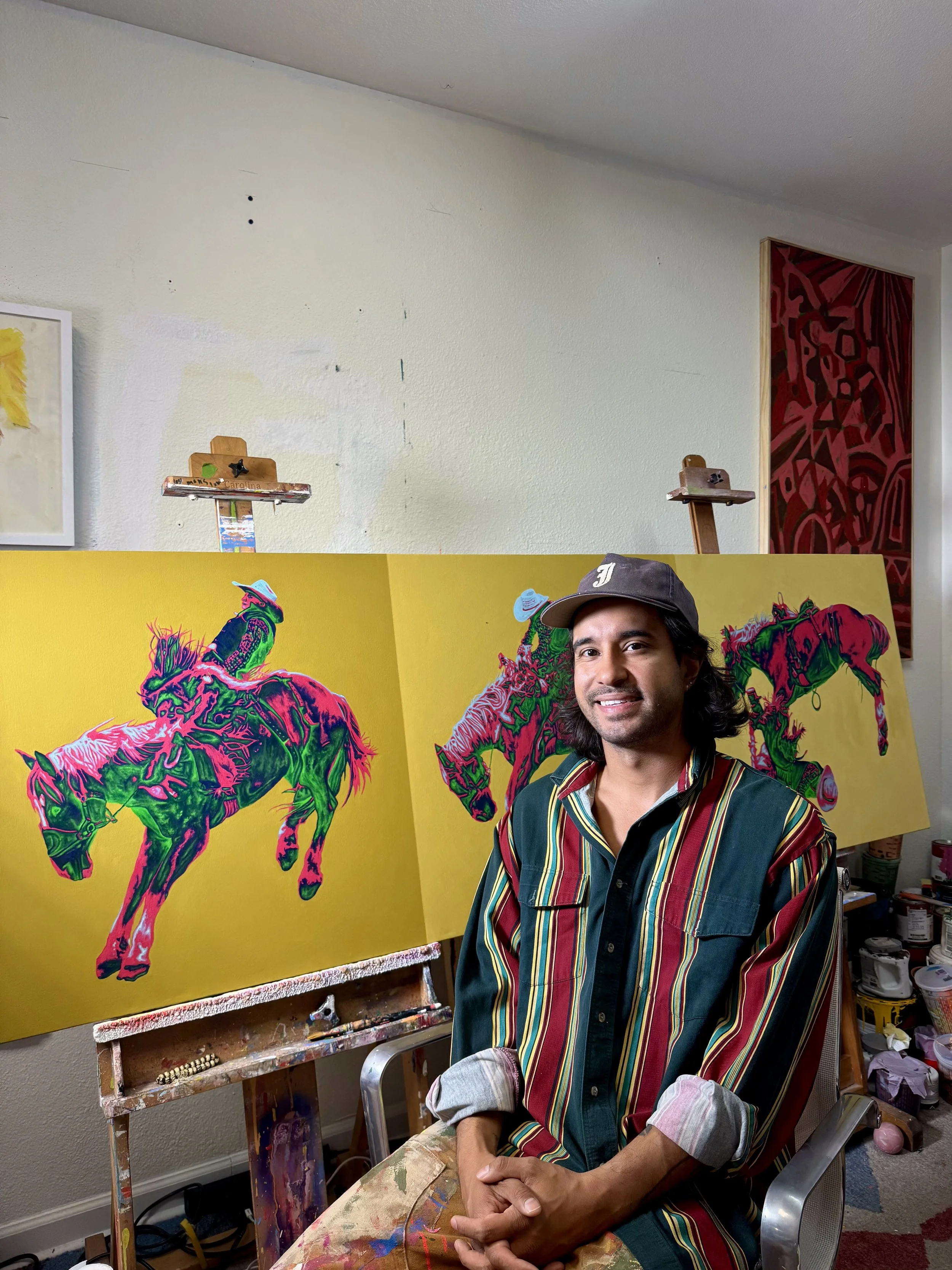 Now based in Austin, Paste blends that raw Western spirit with the city’s eclectic energy. His work spans a range of styles, yet consistently returns to themes of cowboy culture, Native American imagery, and the shifting Texas landscape.