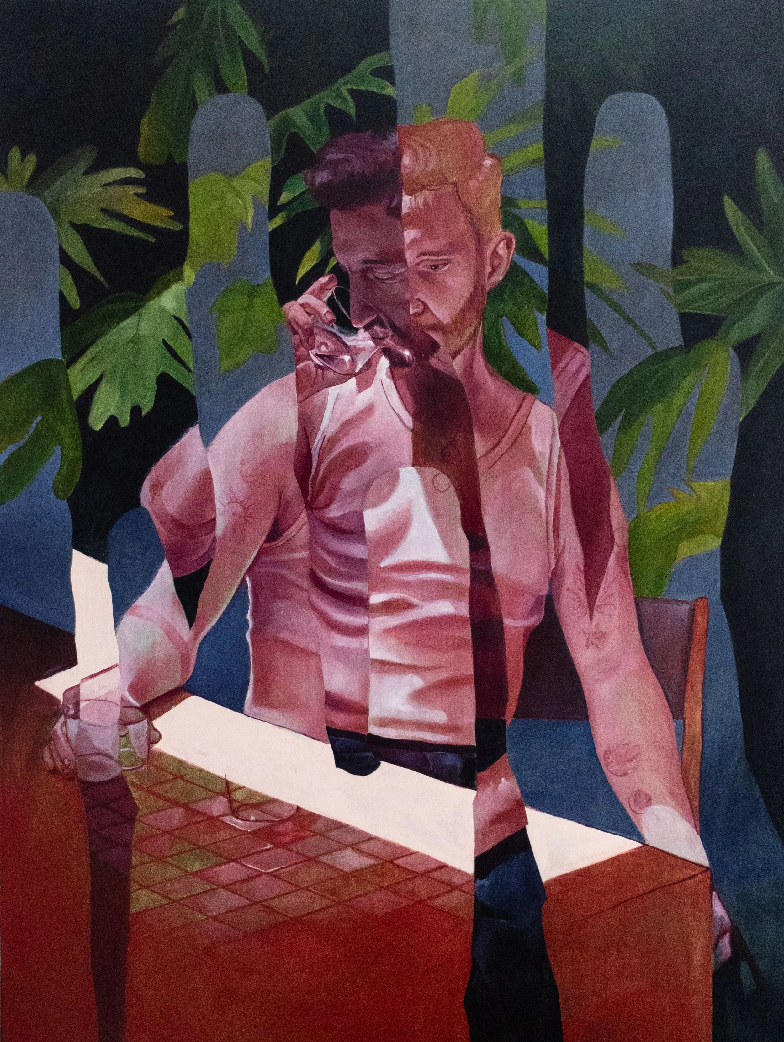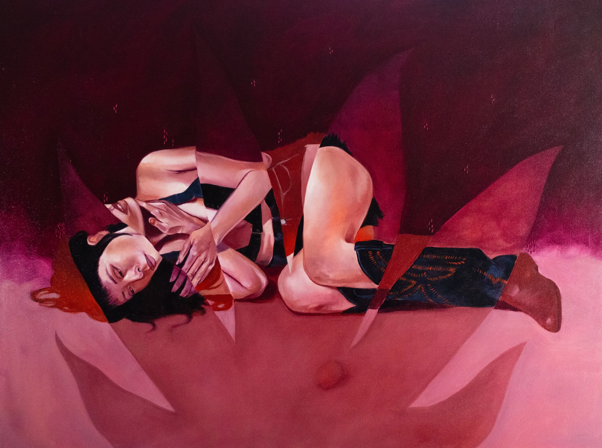 “My work explores the complicated layers of hidden truths and the relentless inner dialogues that shape our sense of self. It faces the struggle with identity and self-destruction, reflecting on the fragmented nature of memory and time. By deconstructing these elements, I seek to reveal the ongoing process of self-reflection and the pursuit of understanding.”