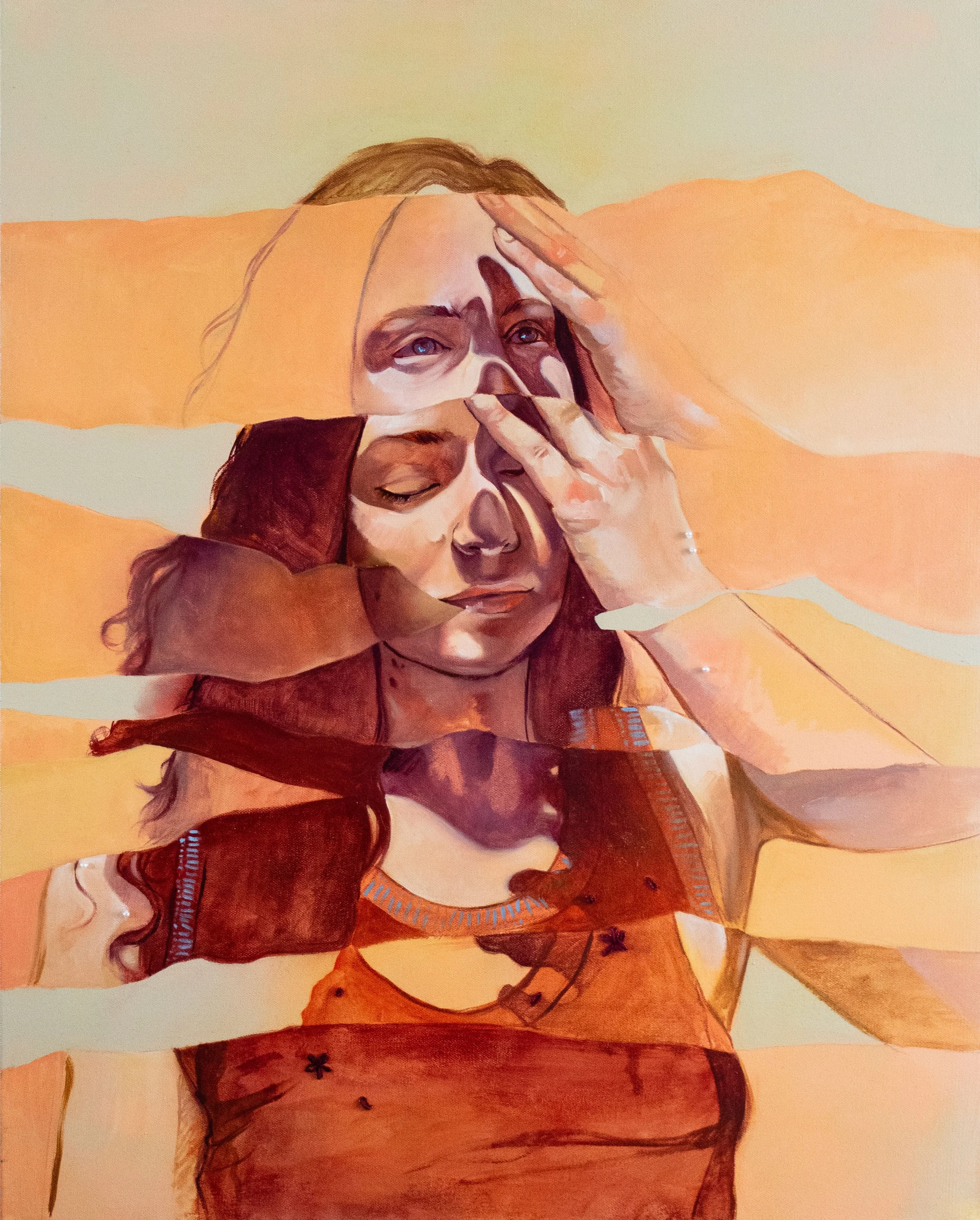 Margo Lunsford-Chacon was born with an identical twin in a multicultural Caucasian-Hispanic American family. Her work explores the intricacies of identity shaped by a layered inheritance. She steers the tension between belonging and distance, transforming personal experiences of mental illness, trauma, and addiction into a practice that is both vulnerable and resilient. Her art turns struggle into honesty, offering viewers a space to encounter their own reflections.